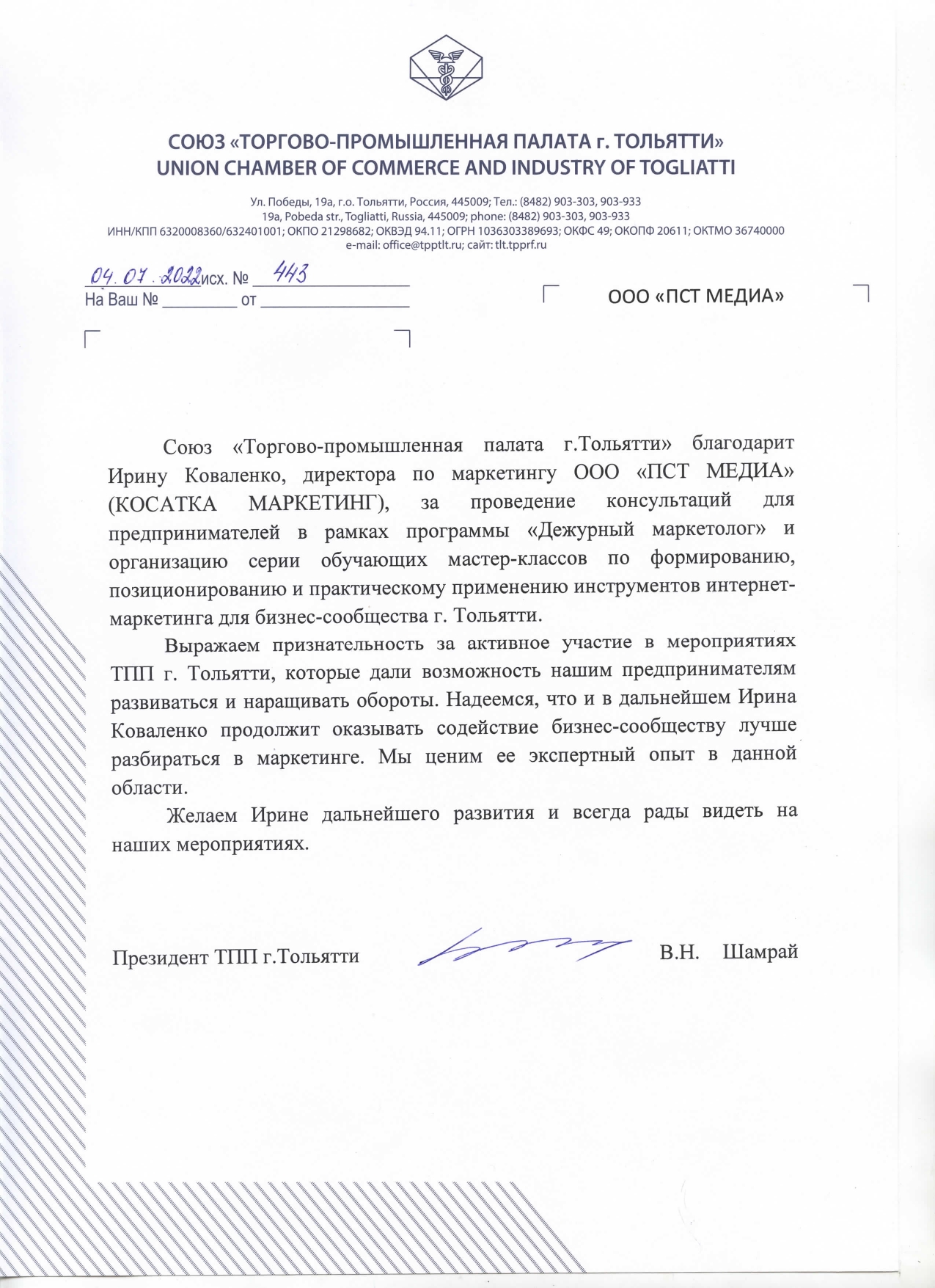 - Спикер третьей практической конференция «Первые итоги реализации экономического блока послания губернатора Самарской области - 2023». Доклад: «Нахождение партнеров и продвижение продукции на внутренних и внешних рынках».